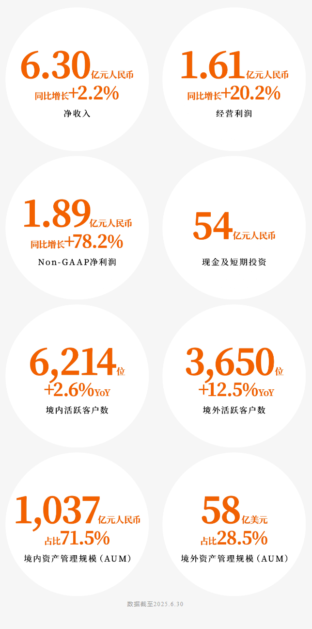 报告期内,公司核心业绩表现突出,多项指标实现显著增长:二季度Non-GAAP净利润达到1.89亿元(人民币,下同),同比大幅增长78.2%;经营利润同比增长20.2%。尤为引人注目的是,全球化战略取得重要突破,境外业务实现净收入占集团总收入比重提升至47.1%,标志着诺亚在全球服务高净值华人客户方面迈出关键一步,国际化运营能力再上新台阶。